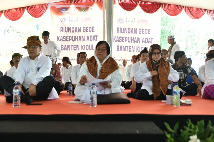Menteri Lingkungan Hidup dan Kehutanan Siti Nurbaya (tengah) saat menghadiri Riungan Gede Kasepuhan Adat Banten Kidul (Sabaki) ke-11 di Kasepuhan Citorek, Kecamatan Cibeber, Kabupaten Lebak, Provinsi Banten, Minggu (3/3/2019). (Dokumentasi KLHK).
