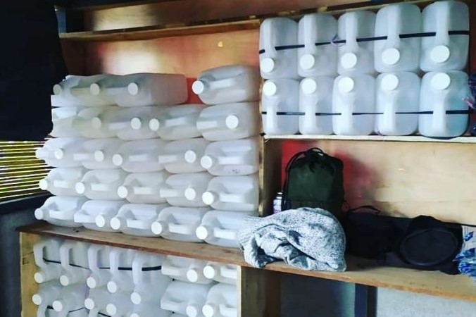 Sejumlah jeriken disiapkan untuk pendaki Gunung Prau. Dalam upaya mengurangi penggunaan sampah plastik, petugas basecamp pendakian Gunung Prau melarang pendaki membawa botol minum plastik sekali pakai mulai Sabtu (22/6/2019). Sebagai solusinya, pihak basecamp menyediakan tempat air berupa jeriken. (Dok. Instagram @basecamp_prau_dieng)*